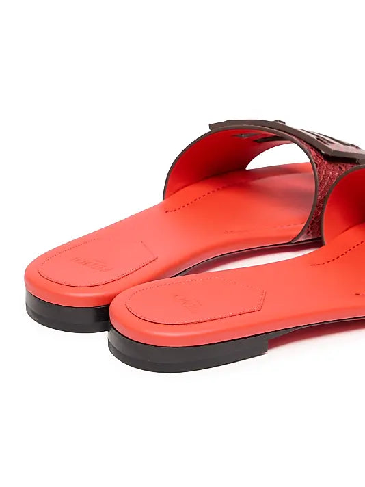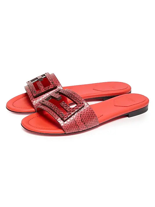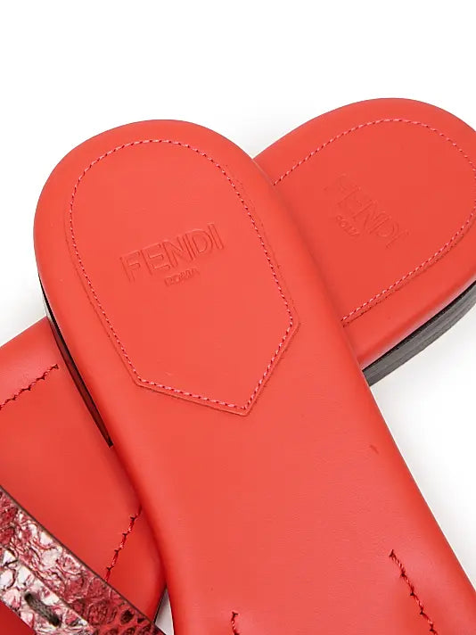 Baguette Snake-Embossed Leather Slides